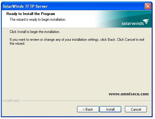 5) Click "Install" to start the installation of Solarwinds Trivial File Transfer Protocol (TFTP) server.