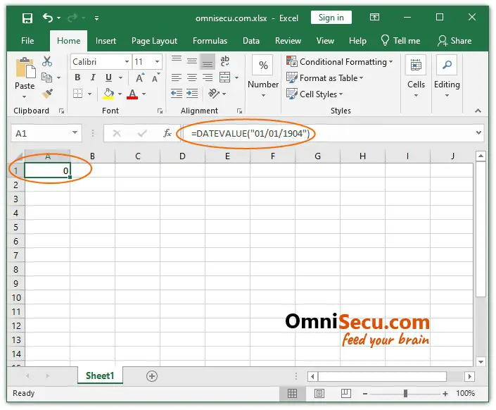 Date values in Excel are stored internally as numeric values. The first day of 1900 date system is considered as January 1, 1900. The default date system for Excel is 1900 date system. To verify this, we can use an inbuilt function in Excel, DATEVALUE. The DATEVALUE inbuilt function in Excel converts a date in its text format to its corresponding date serial number.