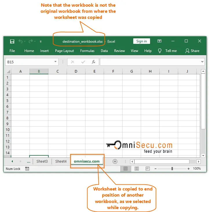 • Currently open Excel workbooks are listed in "Move selected sheets To book" Drop-down menu. Select the workbook to which you want to copy the worksheet. In this example, the workbook is copied to "destination_workbook.xlsx".