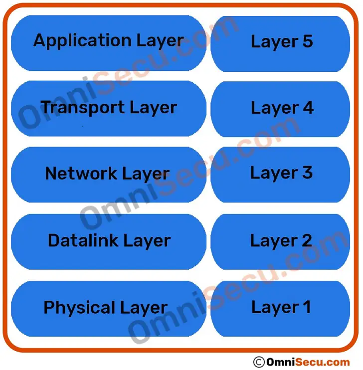Following image shows five layers of TCP/IP model.