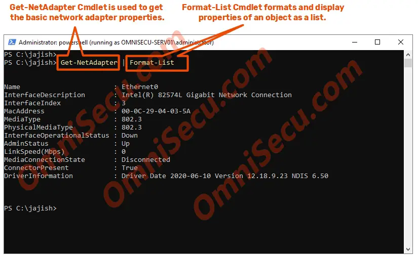 There can be many network adapters in a computer. As you can see from above output, the InterfaceIndex number is 3. We need to properly identify the network adapter and note it’s InterfaceIndex number. Every time when a PowerShell cmdlet related with this network adapter is run, we need to provide this number.